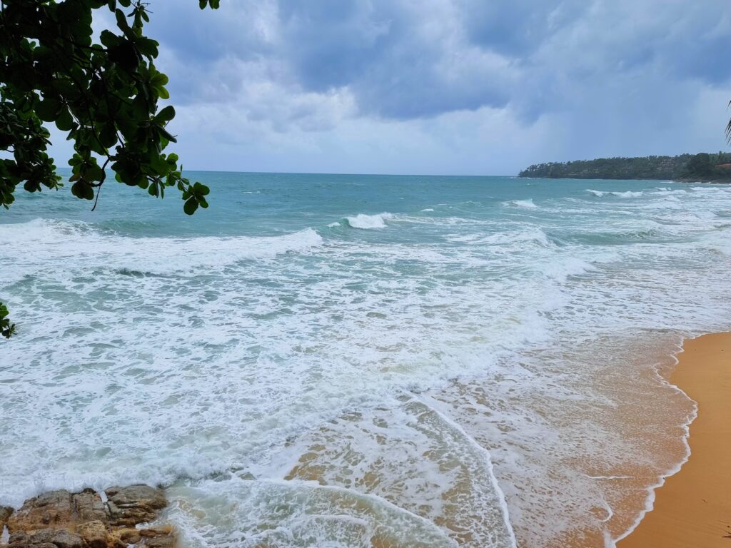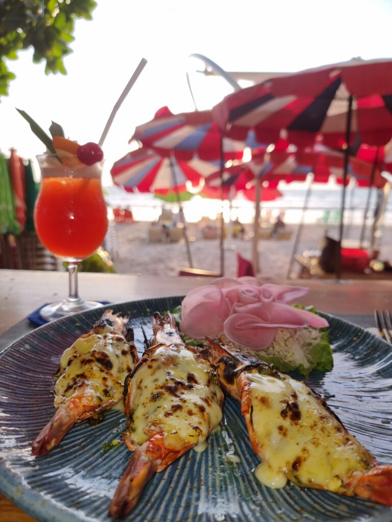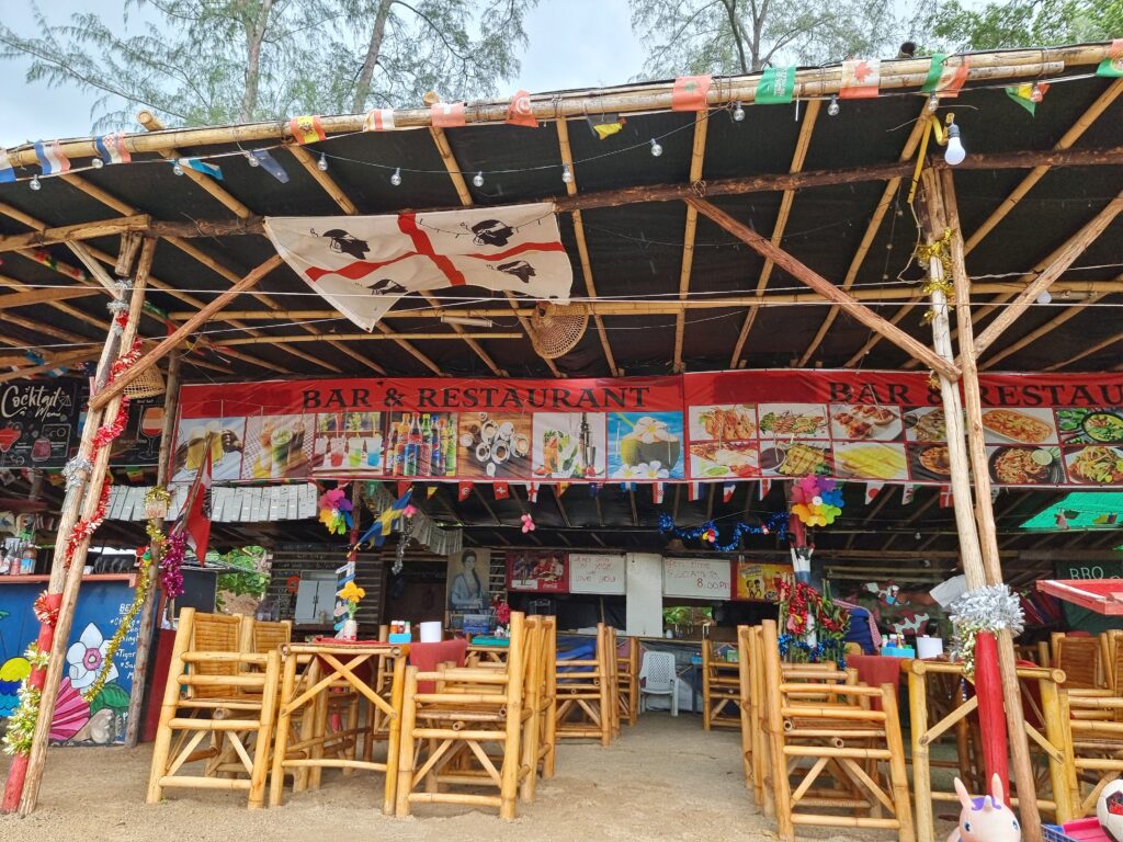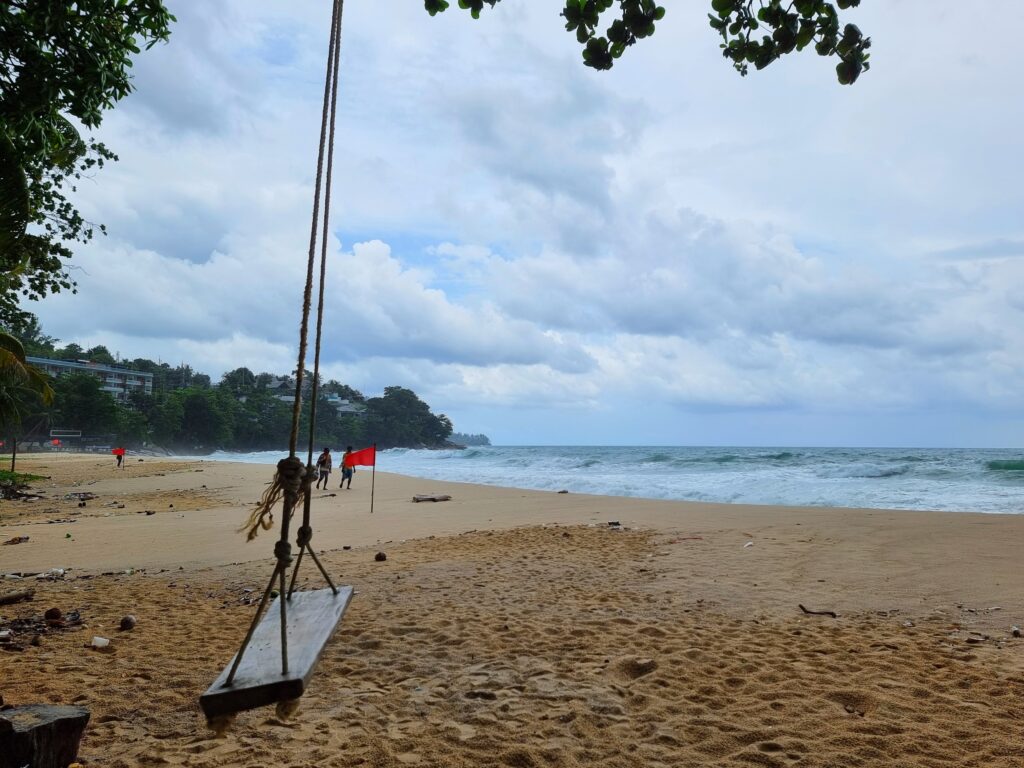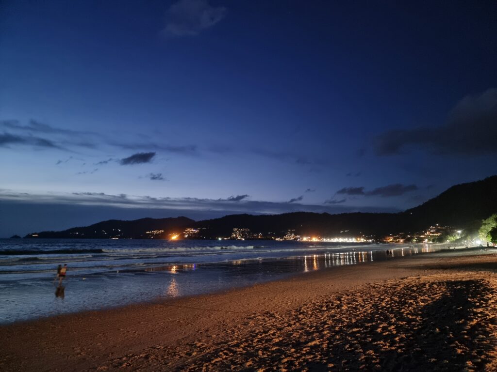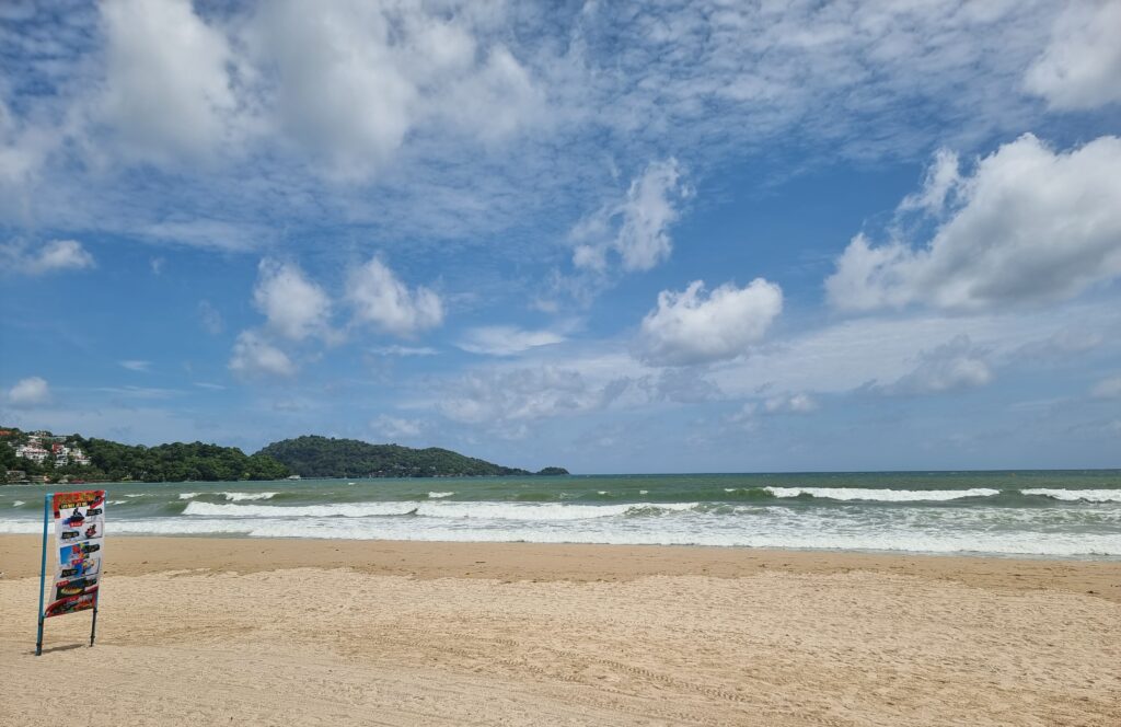 After one SML in Bang Tao I was ready to leave, especially since the greasy local expats started showing up to get their daydrink on. One tried to strike up a chat. I ignored him and scampered away. A 2-minute, 100b motaxi ride took me to Surin beach, a formerly awesome resort style area with tons of nice beachside restaurants. Covid made quick work of them all. Now the beach is a run-down bamboo bar-studded muddy walkway. Clearly it’s bouncing back but they’ve a long way to go. The only nice restaurant to survive is Tukta, at the southern end. I sat on their rooftop patio, had panang and a pina colada, and watched the rough surf for a while. Then for 60b I motaxi’d to Kamala (no relation to America’s cunt Vice President) Beach, half of which is now lined up to the sand with resorts. Then 100b for a motaxi back t’Patong. So for those who’re keeping track, that was 600b to get to Bang Tao and 260 to return.