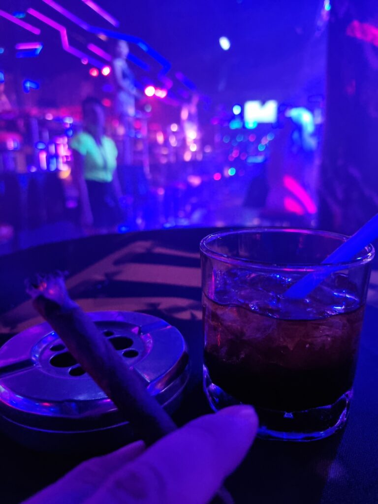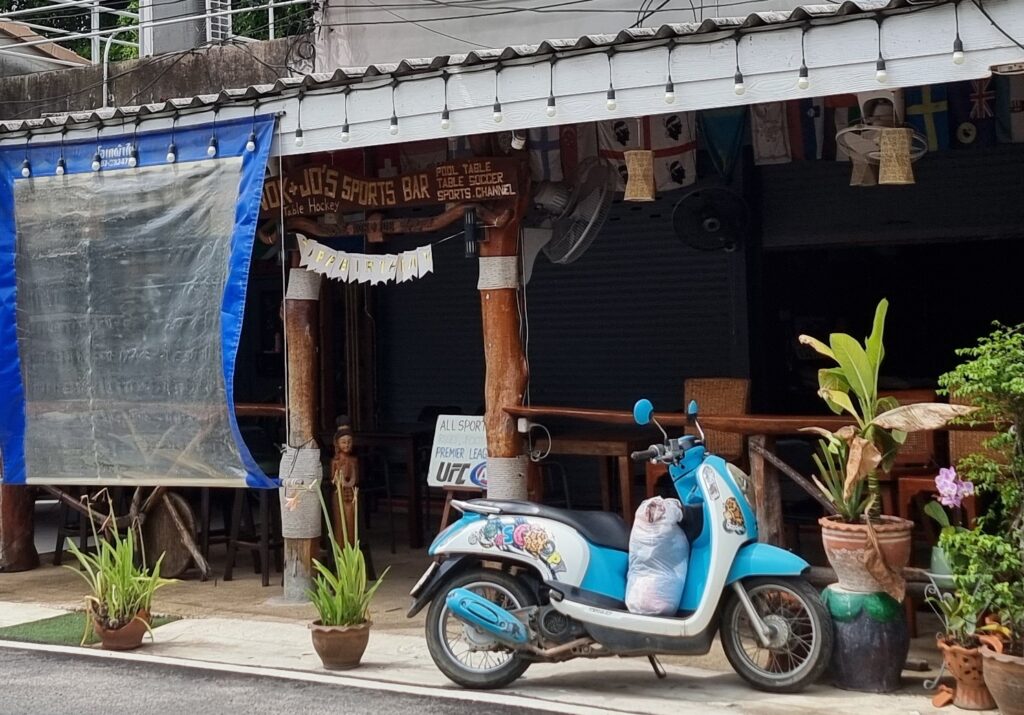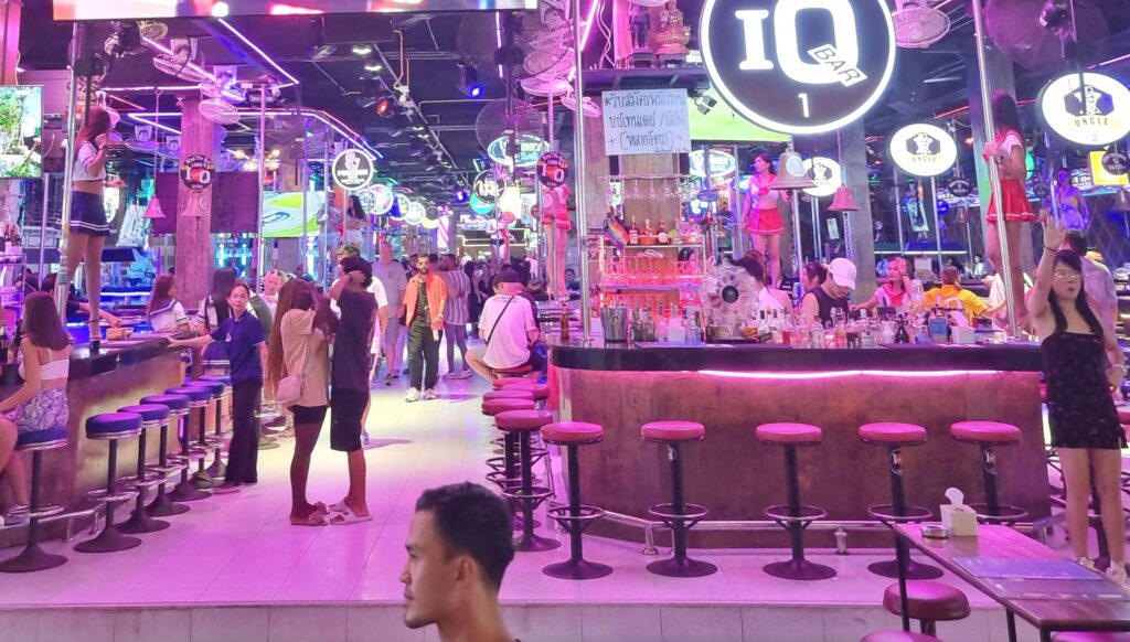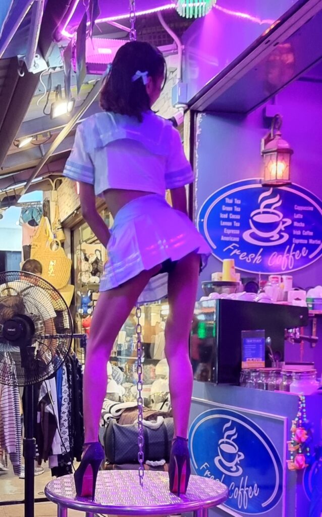 Then I embarked on a ridiculous quest for–get this–earbuds. For 14 years, I bought cheap ones from 7-Eleven, but as of, I guess right now, they’ve stopped selling them. Maybe because of the popularity of wireless head phones. But I don’t do wireless. Wireless are expensive, and I abuse my earbuds. I’d be dropping 3k every month for new ones, or losing them in the gogo constantly. Plus I don’t know what kind of tumors bluetooth is growing in people’s brains. So I spent half an hour walking around Patong, bought 3 different set of earbuds, all of which sucked ass, and finally found a pair in a Tops Daily. Then I struck out along Bangla and was spotted by Bell, who had switched locations as promised, and who insisted I buy her a drink. Which I was happy to do since she was the only hot girl in sight. She was mid-rotation on the pole so I sat alone for a while. Then I hit the toilet and when I returned, she was sat at my table like that scene from Pulp Fiction where Uma Therman returns from doing coke in the loo to find her burger waiting. But, y’know, with clunge instead of beef. She was weirdly shy, I suppose because I was inside her the day before. I necked my beer and got the fuck out of there. Then I had one in Oscar where I was accosted for drinks by bartenders and employed clunge. I didn’t even finish my beer. Then ip popped across to Tai Pan. Now, when I lived in Phuket 12 years ago, it was a wellspring of hot poontang. The dancers were incredible. I made 2 of them part of my harem and loved them as much as this heartless lothario could love anyone. In 2024, the joint is a sad joke. The dancers are disgusting. There are no customers. I was thoroughly searched on entering. The pr girls hand out cards for free shooters, but your choices are either tequila or sambuca. Gross and super gross. I handed the cards back and ordered a b ruskie. 380 baht. They’re 220 in Patpong. Fuck, this island is expensive. I pounded it and went back to the hotel.