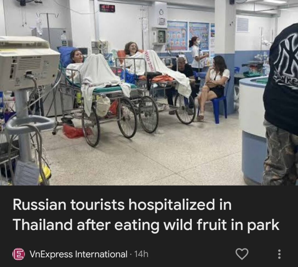 A stupid Russian tourist got hospitalized for picking a mystery fruit off a tree in a public park and eating it. If you’re so broke you can’t afford food once you get here, you shouldn’t come. Fucking stay home, idiot.