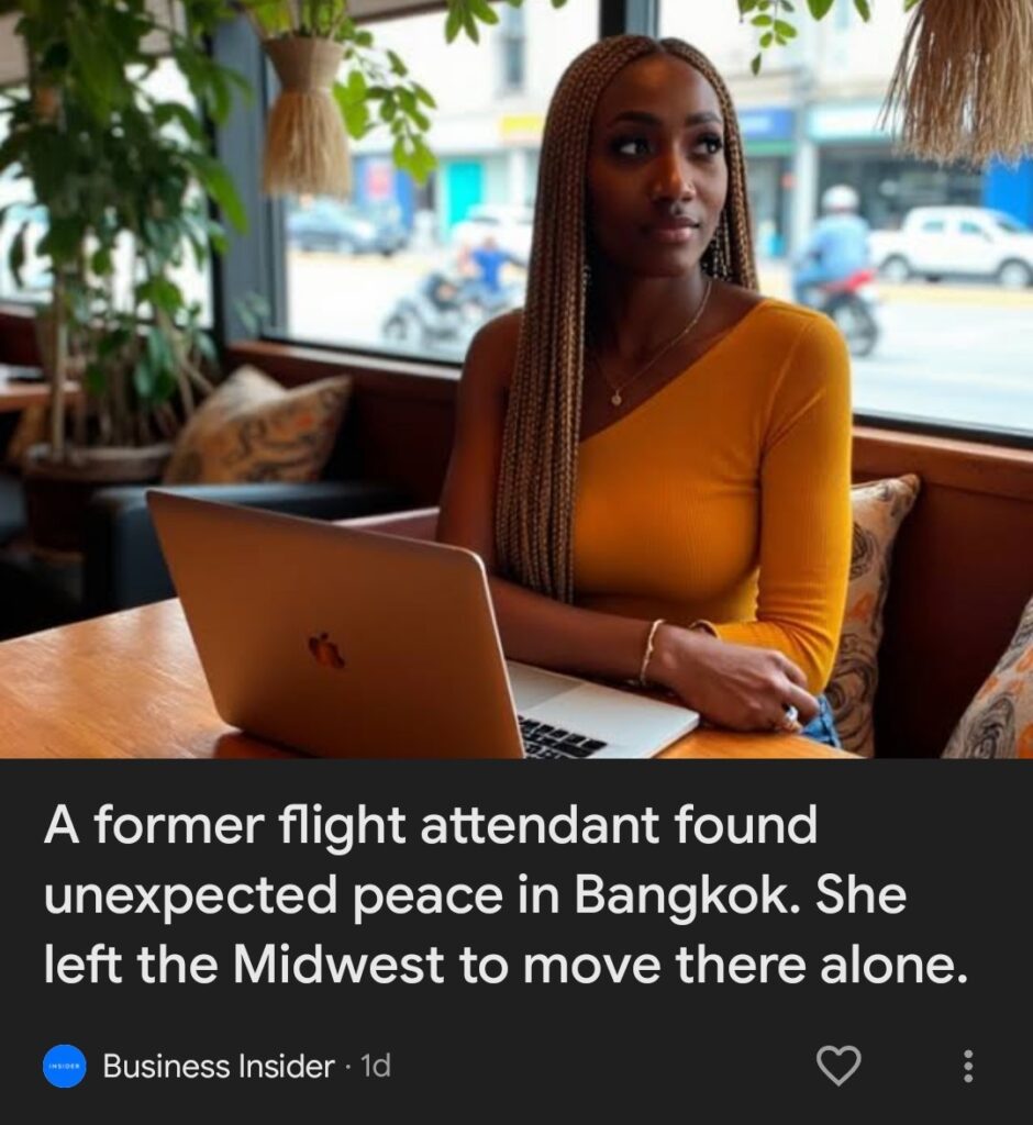 A Blafrican American chick quit her job to move to Bangkok and she love-love-loves it. Weirdly, she didn’t mention that she has no hope of finding a boyfriend because every dude in this town can have one or two or five superhot Thai chicks. She really likes the low cost of living and the warmth of the Thai people, though.