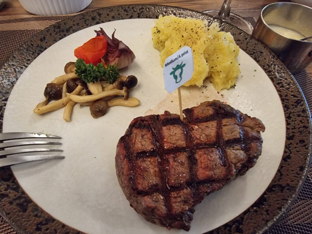 On Monday, we hit up Patrick’s Steakhouse. It’s one of three steakhouses in a covered alleyway that runs parallel to Pattayasaisong 13. There’s also a great tapas joint there, plus a couple other eateries—enough that I’ve nicknamed it “Yum-Yum Alley.” In all of them—and every other restaurant in Ptown—there are crotchety old dudes with one foot in the grave, sitting alone and grubbing. They eat high on the hog every day, and for good reason: because each meal could very well be their last. The steak at Patrick’s was outstanding. I got the 200g Australian filet tenderloin. The slab was perfectly cooked, seasoned with just a little salt and pepper. I paired it with their blue cheese sauce and a South African cabernet. Post-meal, we hit Soi 6 so my bro could say goodbye to his two whores, and to hang with Jersey Dan at Bender’s one more time. I had a brief Thailand problem when I spotted a hottie in French maid cosplay getting food from a noodle cart. I tried to keep an eye on her to track her back to her bar but was waylaid by a pizza order at Slice. When I looked back, she was gone. Then I noticed the staff in one bar were all decked out in French maid cosplay, and assumed it must be her bar. Then I noticed a completely other bar further down the soi where the staff were also wearing French maid attire. Well, shit. From that moment, it was a Sherlock Holmesian mystery, solving the puzzle of which bar was the right one. After pacing back and forth between them for 10 minutes I finally spotted her getting molested by a middle-aged farang who had all the telltale signs of being in love. All the while, my friend Rainy, who sat in the bar next door, put the moves on a customer using the same flirtatious vigor that reeled me in a few days before (throwback to last week’s blog): the head-tilt, the bursts of laughter, the shy turning away-salacious smile combo. She’s a real pro.
